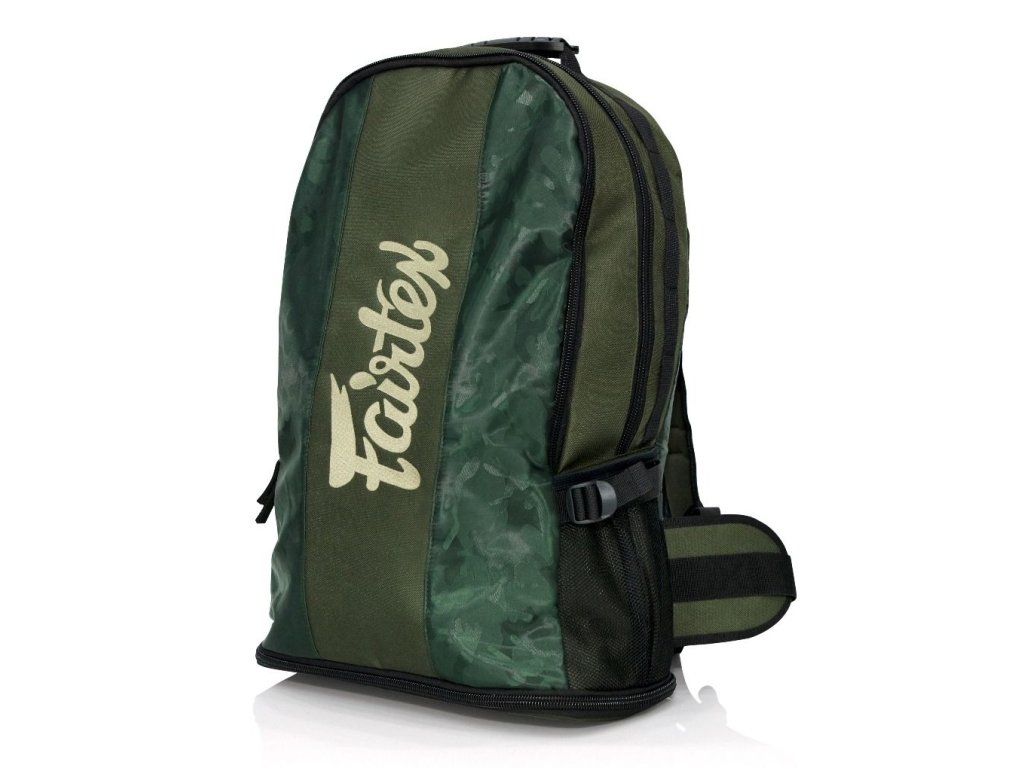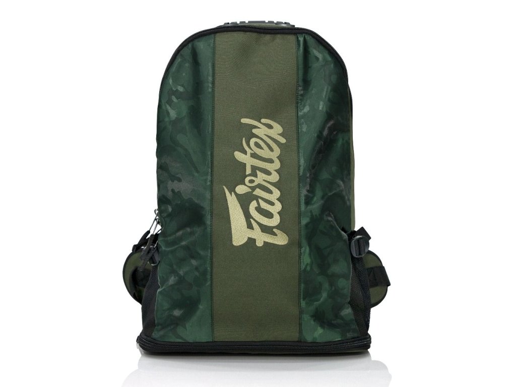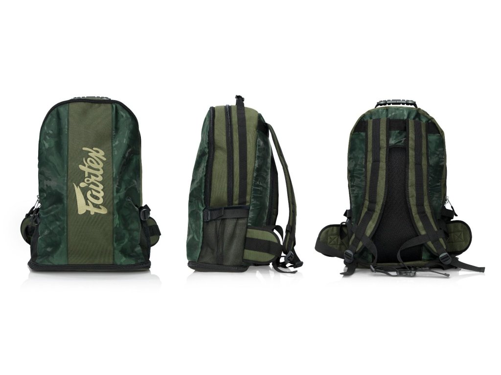 Fairtex Backpack je navržen tak, aby splňoval požadavky sportovců i lidí v pohybu. Vejde se do něj kompletní výbava včetně velkých chráničů holení, tréninkového oblečení i osobních věcí. Batoh disponuje třemi hlavními kapsami a několika menšími přihrádkami. Uvnitř jsou voděodolné přepážky, které umožňují oddělit mokré a suché věci – ideální po náročném tréninku. Zádová část je anatomicky tvarovaná a doplněná hrudním popruhem pro větší pohodlí a stabilitu při nošení. Silné zipy jsou uzamykatelné a ucho na přenášení je zesílené. Batoh se hodí jak do tělocvičny, tak na školu, práci i víkendové cesty.
