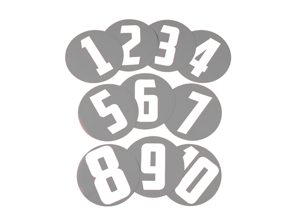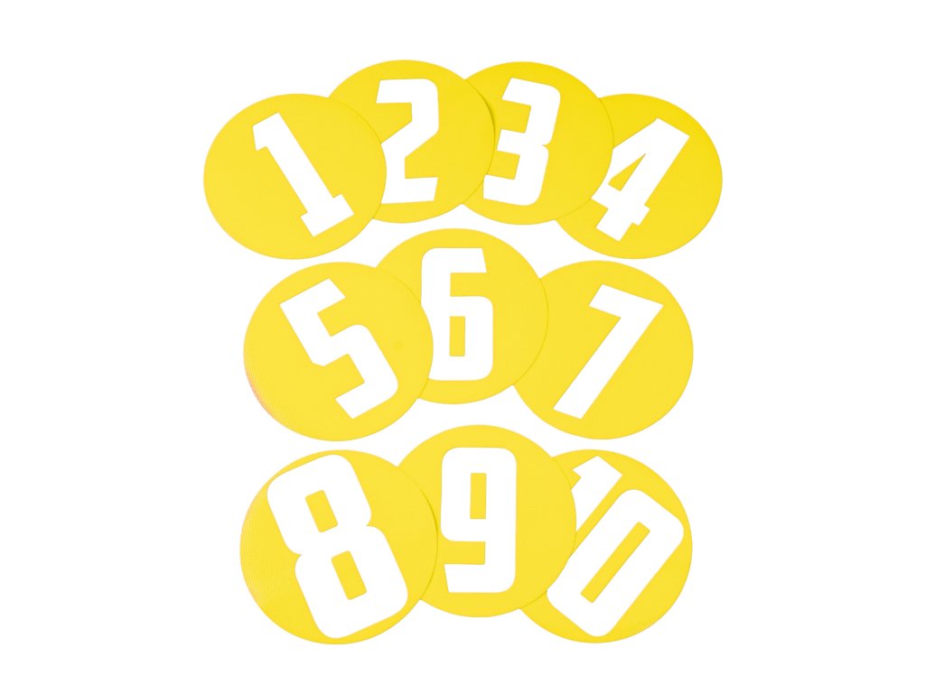 - Číslování: 1 až 10, vícevrstvá barva, UV lak