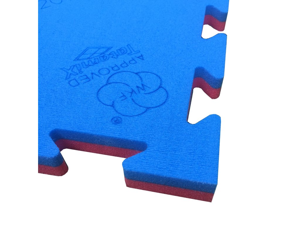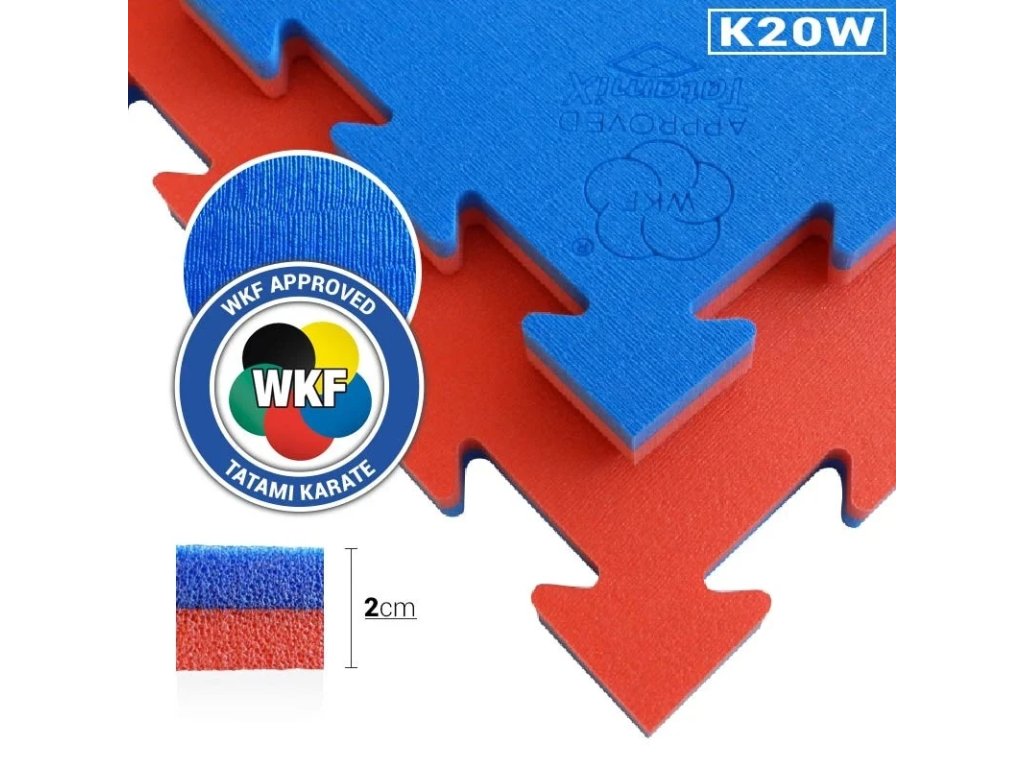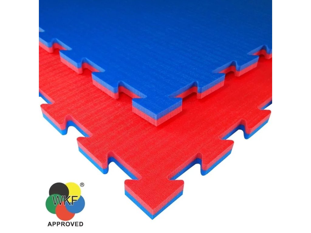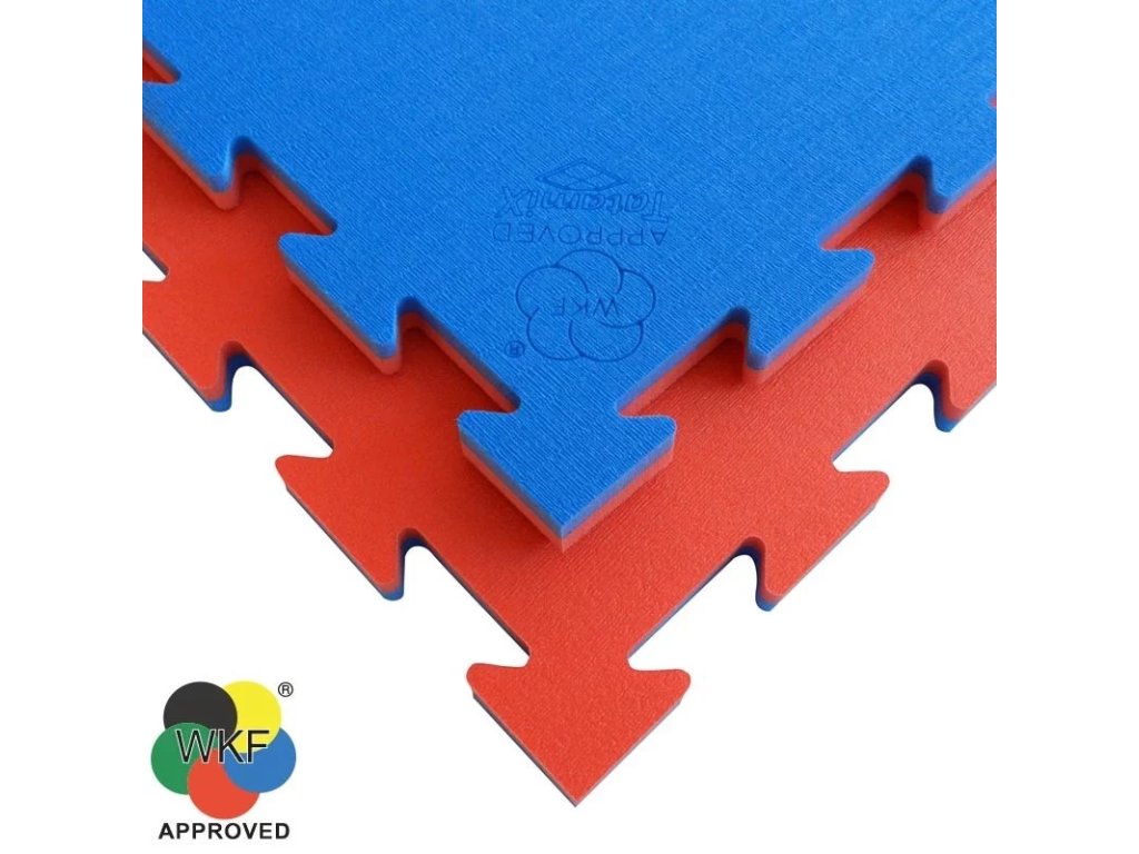 Tatami Karate WKF Approved je profesionální podložka určená speciálně pro karate soutěže na nejvyšší úrovni. Certifikace WKF (World Karate Federation) zaručuje, že produkt splňuje všechny technické požadavky a je schválený pro použití na oficiálních národních i mezinárodních turnajích. Díky výrobě z polyethylenové pěny s vysokou hustotou tatami nabízí optimální kombinaci pružnosti, pevnosti a odolnosti. Protiskluzový povrch připomínající tradiční rýžové tatami zajišťuje stabilitu při pohybu, zatímco technologie Water Jet Cutting poskytuje dokonale přesné puzzle zámky, které pevně drží jednotlivé díly u sebe bez mezer. Tatami je netoxické, antibakteriální a zdravotně nezávadné. Jeho nízká hmotnost umožňuje snadnou manipulaci a rychlou instalaci, kterou zvládnou i děti. Ideální volba pro soutěže, tréninkové haly i profesionální dojo.