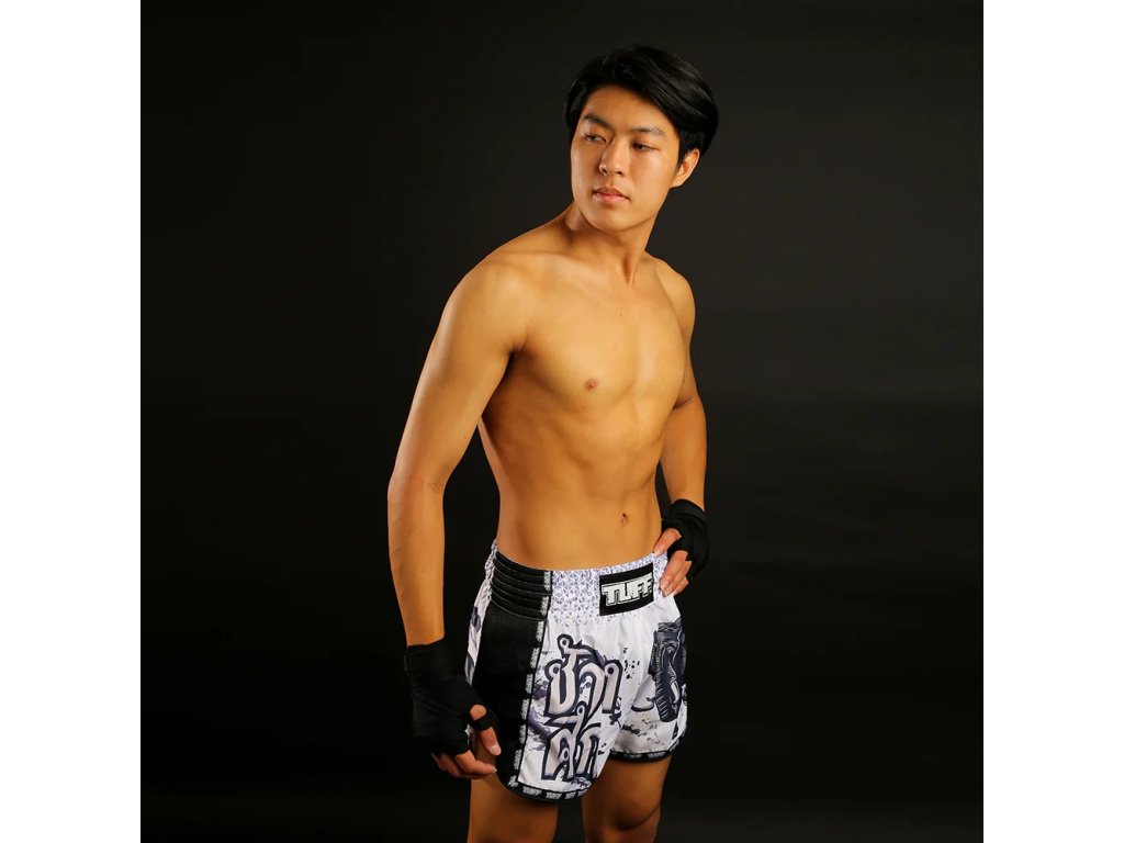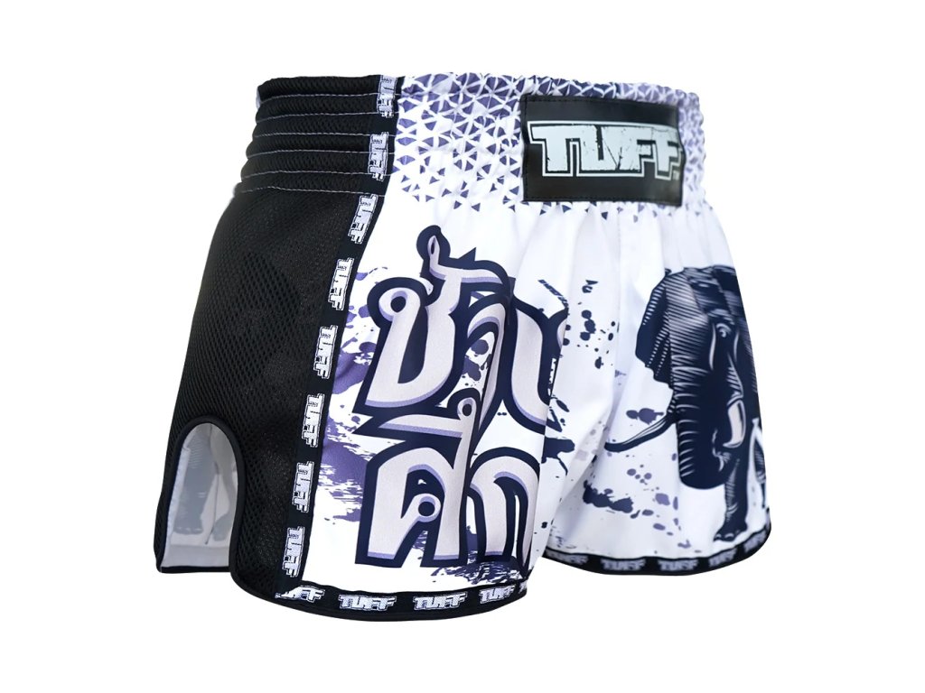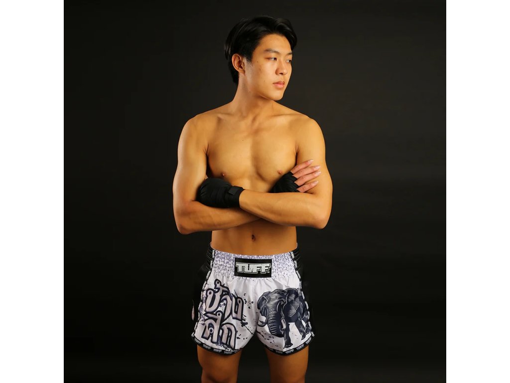Design, který vzdává hold thajské historii. Na bílém podkladu těchto retro trenek dominuje motiv válečného slona – silného symbolu thajského národa. Detaily jako tradiční vzory a historická inspirace dodávají trenýrkám jedinečný, téměř ceremoniální charakter. Ideální volba pro bojovníky, kteří si cení kultury a síly.