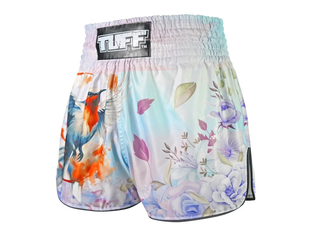 Muay Thai trenky TUFF „Yume no Hachidori – The Bird of Dream“ z kolekce Retro Style vynikají tradičním japonským motivem kolibříka na pozadí plném květin a jemných barevných kontrastů. Kolibřík je v japonské kultuře symbolem naděje, energie a lehkosti – přesně to, co potřebuješ při každém tréninku.Retro střih s vysokými bočními rozparky nabízí maximální volnost pohybu při všech technikách. Lehký, prodyšný materiál je ideální pro intenzivní trénink v horkém prostředí. Elastický pas se skrytými švy a klasickým logem TUFF vpředu zajišťuje komfort a stabilitu.